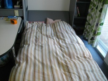 このベッドと左側にあるテーブルは、備え付けなんでございますよ~
